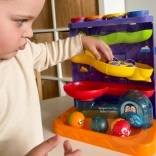 Deti môžu guľôčky zhadzovať kladivkom, sledovať ich jazdu po dráhach a spúšťať autíčko po samostatnej zjazdovej rampe. Jedna hračka, mnoho spôsobov hrania.