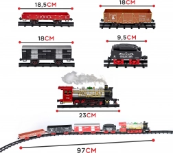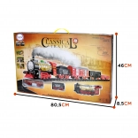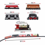 Sada obsahuje 29 prvkov: lokomotívu, uhoľný vozeň a vagóny, vďaka čomu si deti postavia vlastný okruh s rozmermi 170 × 82 cm. Celková dĺžka súpravy je cca 94 cm, dĺžka koľajiska 460 cm. Ideálny darček, ktorý podporuje rozvoj fantázie a manuálnych zručností.