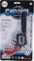 Objavte klasický revolver na kapsule, ktorý poteší malých aj veľkých fanúšikov westernov. Vďaka otočnému bubienku pôsobí vierohodne a možno ho používať s kapsulami aj bez nich – ako hračku, rekvizitu alebo súčasť kostýmu. Čierne telo s červenou rukoväťou dodáva autentický vzhľad a pohodlné držanie.