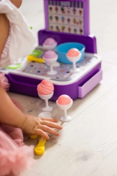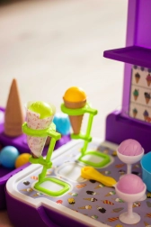 Stánok so zmrzlinou umožňuje deťom prežívať radostné okamihy hrania na zmrzlinový obchod, čo prispieva k rozvoju ich kreativity a sociálnych zručností.