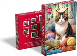 Užite si relaxačné skladanie s krásnym motívom mačky hrajúcej sa s klbkami priadze. Toto kvalitné puzzle s 1000 dielikmi ponúka presné výseky, príjemný papier a po zložení vytvorí obraz s rozmerom cca 50 × 70 cm – ideálny na zarámovanie.