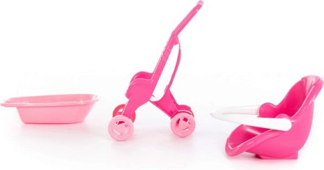 Hľadáte dokonalú hračku pre malú mamičku? Táto ružová sada pre bábiky obsahuje kočík, autosedačku a vaničku pre realistickú hru na starostlivosť. Ľahká, odolná a ľahko prenosná, ideálna na domáce hranie aj na cesty.