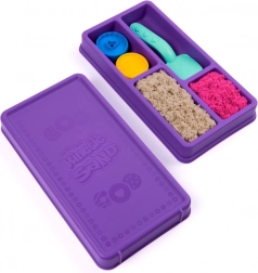 Piesok je vyrobený z prírodného materiálu, drží pohromade a zároveň sa ľahko upratuje. Nevysychá, takže sa k tvoreniu môžete vracať znova a znova. Uzatvárateľné fialové puzdro udrží piesok aj nástroje prehľadne na mieste – ideálne na cesty aj do detskej izby.