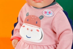 Roztomilé šatičky do džungle pre bábiky BABY Born vo veľkosti 36 cm. Tieto jemne farebné šatičky s obrázkom hrošíka sú skvelým doplnkom na rozšírenie pestrej hry. Obsahujú: