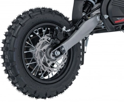 Hlboký vzor nafukovacích pneumatík (predná 2,75-12, zadná 3-10) poskytuje skvelý záber na hline aj štrku. Reťazový pohon je spoľahlivý a nenáročný na údržbu. Maximálna nosnosť 90 kg a svetlá výška 29 cm dávajú jazdcovi priestor pre skutočné off‑road zážitky.