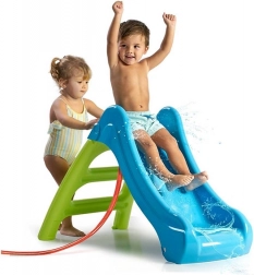 Prvá šmykľavka pre najmenších od 12 mesiacov ponúka zábavu po celý rok – doma aj na záhrade. Vďaka funkcii 2v1 možno pripojiť záhradnú hadicu a premeniť ju na vodnú šmykľavku ideálnu do horúcich dní. Ľahká, skladacia, z odolného plastu s ANTI-UV ochranou proti blednutiu farieb, s vysokými bočnicami a stabilnou základňou pre bezpečné hranie.