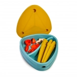 Oddelené vaničky umožňujú súčasne naliať vodu aj nasypať piesok. Deti tak môžu miešať, presýpať a experimentovať so zmyslovou hrou bez neporiadku.