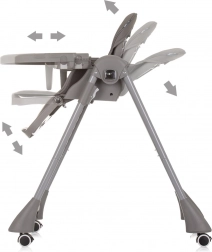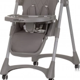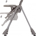 Rodičia ocenia dvojitý tác – horný odnímateľný na rýchle čistenie a spodný s ochrannou T-tyčou pre maximálne bezpečie. Stoličku ľahko prispôsobíte jedálenskému stolu vďaka 8 stupňom výšky. Štyri kolieska zaistia mobilitu v domácnosti a po jedle ju jednoducho zložíte do kompaktnej veľkosti.