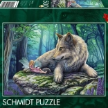 Objavte čaro prírody s týmto nádherným puzzle, ktoré prináša harmóniu mystického vlka a rozprávkovej víly. Vysoká kvalita spracovania zabezpečuje, že dieliky perfektne zapadajú, čo robí skladanie ešte príjemnejším zážitkom.