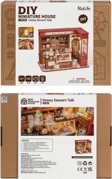 Postavte si vlastnú „Medovú cukráreň“ – realistické dioráma s vitrínami, policami a miniatúrnymi dezertmi, ktoré rozžiaria každý interiér. Presne vyrezané dieliky do seba bezpečne zapadajú bez lepidla, takže stavba je čistá, zábavná a pritom pevná. Integrované LED osvetlenie navodí príjemnú atmosféru a zvýrazní všetky detaily výkladu.