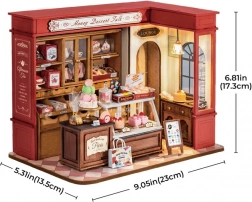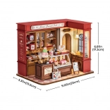 Teplé LED svetlo rozžiari vitríny a zvýrazní každý detail miniatúrnej cukrárne. Ideálne na vystavenie na polici či pracovnom stole.