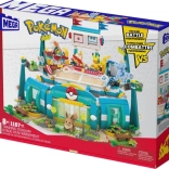 S Mega Pokémon pohyblivým tréningovým štadiónom sa deti môžu ponoriť do sveta Pokémonov a zažiť dynamické bitky. Tento set umožňuje zostaviť vlastný štadión a následne pomocou vstavaných odpaľovacích zariadení oživovať pokémon bitky priamo v pohodlí domova. Štadión obsahuje klikovú mechaniku, ktorá po otočení simuluje jasajúcich divákov.
