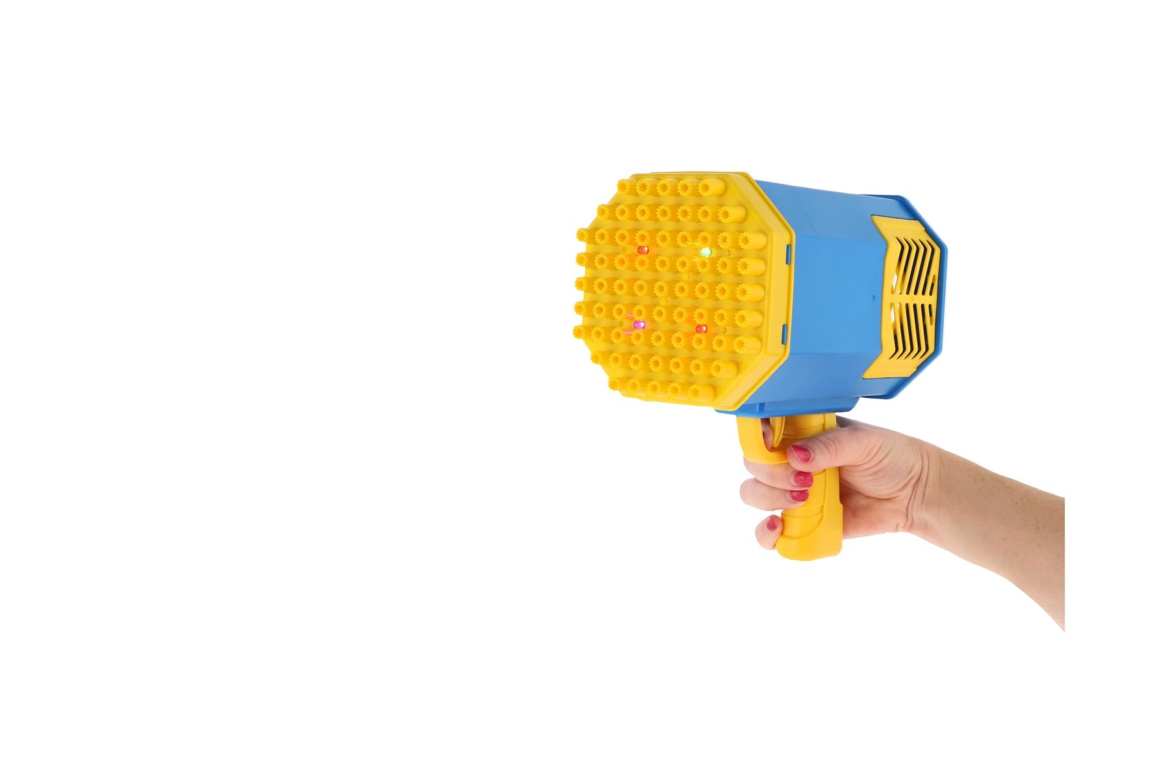 Predná mriežka s mnohými tryskami vyfukuje pri každom stlačení spúšte stovky bubliniek naraz – ideálne pre okamžitý wow efekt.