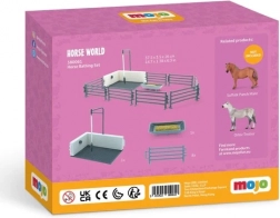 Realistická súprava pre malých milovníkov stajní: ohrada s umývacím priestorom na starostlivosť o kone, ručne maľované detaily a PVC bez ftalátov. Prísne testované podľa medzinárodných štandardov, vhodné od 3 rokov. Kone nie sú súčasťou balenia.