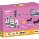 Objavte svet chovu koní s realistickou stavebnicou Mojo. Tento set ponúka konskú stajňu s príslušenstvom, ručne maľovaný výbeh a detailné spracovanie. Súčasťou sú lopata, vidly, metla, vedro, vrece ovsa a košík na seno. Vyrobené z PVC bez ftalátov, vhodné pre deti od 3 rokov. Kone nie sú súčasťou balenia.