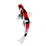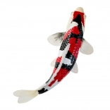 Typická kombinácia bielej, čiernej a červenej verne napodobňuje skutočné koi Showa a zvýrazňuje detaily šupín a plutiev.