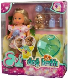 Malá a roztomilá Bábika Evka prichádza spolu so svojím milovaným psíkom, ktorý čaká na kúpanie a starostlivosť. Kombinácia hračiek je ideálna pre rozvoj detskej fantázie a motoriky. Spoločne sa postarajú o všetky potreby, aby psík žiaril čistotou.