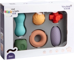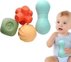 Táto sada je navrhnutá na prirodzené objavovanie sveta prostredníctvom hry. Rôznorodé povrchy a tvary podnecujú hmat, zrak aj pohyb, podporujú poznávacie schopnosti a zvedavosť. Mäkký, elastický materiál je príjemný na dotyk a šetrný k detským dlaním, takže je bezpečný aj pri hryzení.