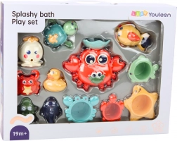 Spríjemnite kúpanie svojim deťom pestrou sadou do vane, ktorá obsahuje kraba, rybky, korytnačku, veľrybu a ďalšie morské zvieratká. Hračky sa vznášajú na vode, vedia striekať vodu a vďaka otvorom na prelievanie podporujú cit pre vodu, zábavu aj učenie. Mäkký a bezpečný materiál je príjemný na dotyk a skvele sadne do malých ručičiek.