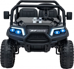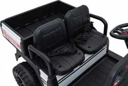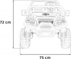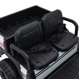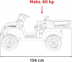 Robustný detský off-road pick-up s pohonom 2x200 W a batériou 24V 9Ah pre veľa zábavy v teréne. Ponúka dve sedačky z eko kože, penové kolesá EVA pre tichú jazdu, predné a zadné LED svetlá, bohatý audiopanel s FM, MP3 a Bluetooth a diaľkové ovládanie 2,4 GHz s bezpečnostným tlačidlom STOP. Nosnosť až 60 kg a veľký zadný nákladový priestor na hračky.