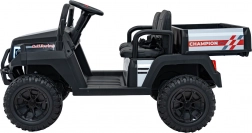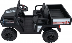 Výkonný elektrický pick-up CHAMPION v výraznom čiernom prevedení je stavaný na dobrodružstvá. Dva motory 200 W (spolu 400 W) v kombinácii s batériou 24V 9Ah poskytnú silu aj do mierneho terénu, zatiaľ čo penové kolesá EVA a kompletné odpruženie vpredu aj vzadu zaisťujú komfort a stabilitu. Plynulý rozjazd, 2 rýchlosti vpred a spiatočka uľahčia ovládanie začiatočníkom.