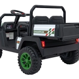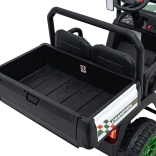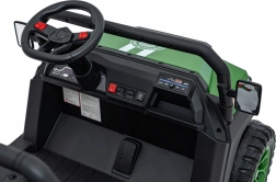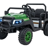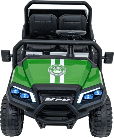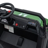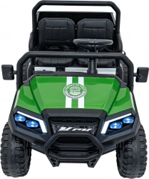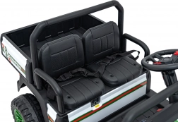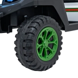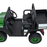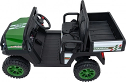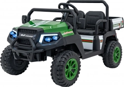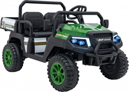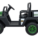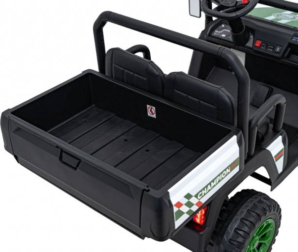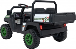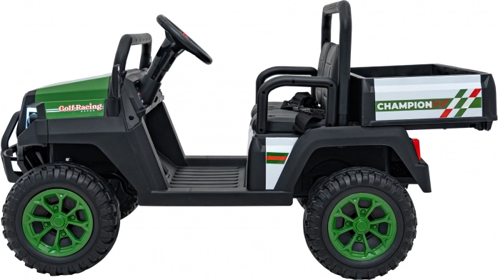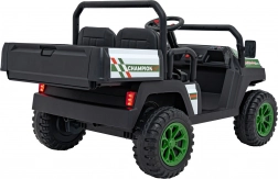 Pick-up CHAMPION v zelenej farbe je ideálnou voľbou pre malých dobrodruhov. Vďaka silným motorom 2×200 W a batérii 24 V 9 Ah ponúka plynulú jazdu, pomalší rozjazd pre bezpečie a dve rýchlosti vpred aj vzad. Veľké EVA kolesá 29×12 cm, predné aj zadné odpruženie a vysoká svetlá výška podvozka 19 cm zabezpečujú komfort aj mimo chodníka.