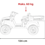 Rodičia ocenia diaľkový ovládač 2,4 GHz s tromi rýchlosťami a bezpečnostným tlačidlom Stop pre okamžité zastavenie. Maximálna nosnosť je 60 kg, vďaka čomu je vozidlo vhodné aj pre dve deti. Súčasťou balenia je nabíjačka, návod a montážna sada.