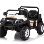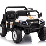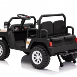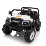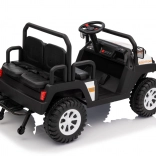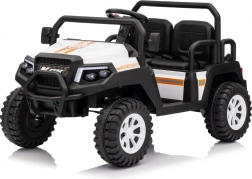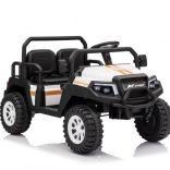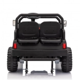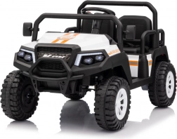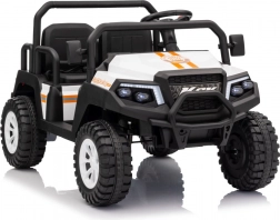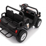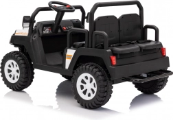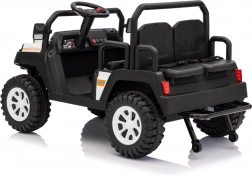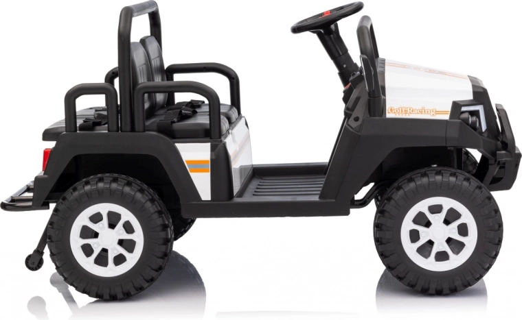 Výkonné a priestranné 4‑miestne elektrické buggy pre deti s batériou 24 V 9 Ah a dvojicou motorov 2×200 W. Ponúka EVA kolesá 29×12 cm, odpruženie vpredu aj vzadu, plynulý rozjazd, LED svetlá a diaľkové ovládanie 2,4 GHz so STOP. Komfort zabezpečujú 4 sedadlá z ekokože s pásmi, hudbu obstará FM/MP3/Bluetooth/USB. Nosnosť až 120 kg.