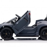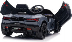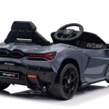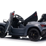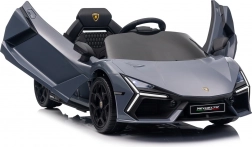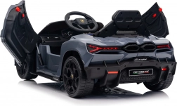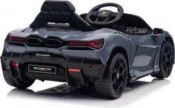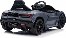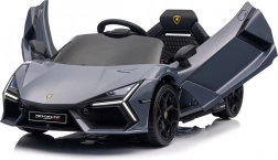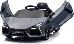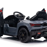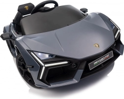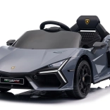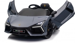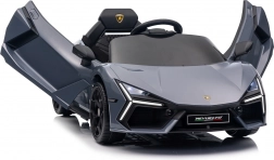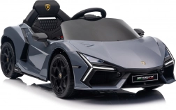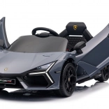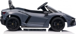 Štýlové detské elektrické autíčko LAMBORGHINI Revuelto v elegantnej sivej farbe prináša realistický zážitok z jazdy. Výkonný pohon 2×45 W, batéria 12 V 9 Ah, mäkké EVA kolesá, otváracie scissor dvere a komfortné sedadlo z ekokože s pásmi. Pre bezpečnosť rodičov je k dispozícii diaľkový ovládač 2,4 GHz s tlačidlom Stop. Nechýbajú LED svetlá a bohatá audio výbava s Bluetooth/MP3/FM/USB.