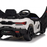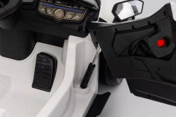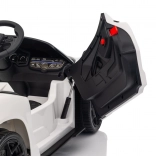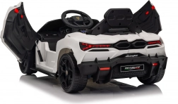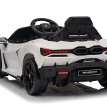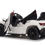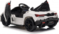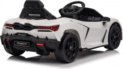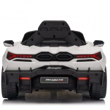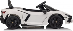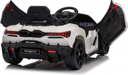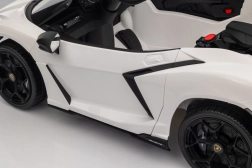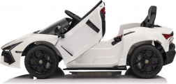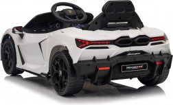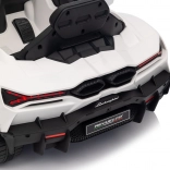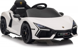 Štýlové detské elektrické autíčko LAMBORGHINI Revuelto v bielej farbe prináša realistický zážitok z jazdy. Ponúka 4×35 W motory, výkonný akumulátor 12 V 9 Ah, mäkké EVA kolesá, otváracie dvere, sedadlo z koženky s bezpečnostnými pásmi a bohatý audio panel s Bluetooth/MP3/USB/FM. Rodičia ocenia diaľkové ovládanie 2,4 GHz s tlačidlom núdzového zastavenia a plynulý soft start pre bezpečnú jazdu vpred aj vzad.