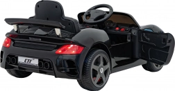 Štýlové elektrické autíčko RUF CTR3 v elegantnej čiernej farbe ponúkne deťom realistický zážitok z jazdy. Disponuje 2× 35 W motormi, výkonnou batériou 12 V 9 Ah, penovými EVA kolesami pre tichú jazdu a otvárateľnými dverami. Pre bezpečnosť aj pohodlie nechýba bezpečnostný pás, plynulý rozjazd a diaľkové ovládanie 2,4 GHz s núdzovým tlačidlom Stop. LED predné aj zadné svetlá a multimediálny panel s MP3, Bluetooth a USB zaručia veľa zábavy.