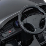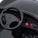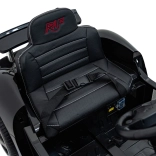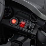 Diaľkový ovládač 2,4 GHz s 3 rýchlosťami a tlačidlom Stop na okamžité zastavenie vozidla. Bezpečnostný pás na sedadle z eko kože udrží dieťa v bezpečí.
