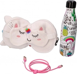 Pohodlný cestovný vankúš s integrovanou maskou na oči v štýle jednorožca zaistí pokojný spánok na cestách. Ideálny pre deti od 3 rokov, mäkký materiál, kompaktné rozmery a certifikácia CE pre bezpečné používanie.