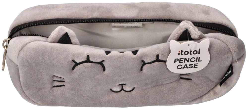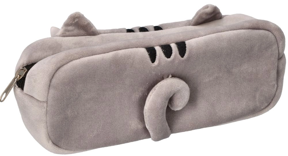 Toto sivé plyšové puzdro s motívom mačky zaujme hebkým materiálom, vyšívanými detailmi a roztomilými uškami. Vďaka kompaktným rozmerom sa pohodlne zmestí do školskej tašky a spoľahlivý zips udrží vaše písacie potreby bezpečne pokope.