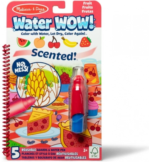 Voňavé vodné omaľovánky Water WOW! prinášajú deťom kreatívnu zábavu bez farbičiek a škvŕn. Po navlhčení sa obrázky s motívmi ovocia okamžite vyfarbia a po vyschnutí zmiznú, takže sa dajú používať znova a znova. Kompaktný špirálový blok s priloženým vodným perom je skvelý spoločník na cesty.