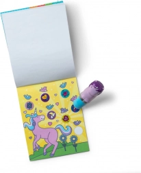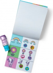 Sticker WOW! prináša jednoduché a čisté pečiatkovanie bez neporiadku. Ergonomický pečiatkovač je ideálny pre malé detské ruky a dopĺňa ho farebná knižka so stránkami plnými jednorožcov, hviezdičiek a radostných motívov. Každý odtlačok podnecuje kreativitu a podporuje sústredenie.