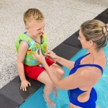 Detská plavecká vesta zelená je perfektnou pomôckou pre deti, ktoré sa ešte len učia plávať a potrebujú pocit bezpečia vo vode. Táto vesta poskytuje stabilný vztlak a je vyrobená z pohodlného materiálu s vloženými penovými vložkami. Dizajn vo veselých farbách zároveň ponúka ochranu proti slnku UPF 50+, aby chránil pred vyblednutím farieb. Vesta sa zapína na zips a pracku, čo zaisťuje, že vaše dieťa zostane v bezpečí. Vďaka nastaviteľným popruhom sa vesta ľahko prispôsobí postave vášho dieťaťa a podporuje jeho sebavedomie vo vode.