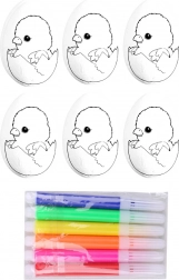 Objavte zábavné veľkonočné tvorenie so sadou, ktorá obsahuje 6 polystyrénových vajíčok s motívom kuriatka v vajíčku a 6 fixiek v pestrých farbách. Hladký, biely povrch vajíčok je ideálny na maľovanie, písanie aj lepenie ozdôb. Skvelé pre rodinné dielne, škôlky aj školy.