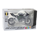 Sivý športový motocykel v mierke 1:12 kombinuje masívne kovové diely s precíznymi detailmi, takže vyzerá skvelo na poličke aj počas hry. Vďaka svetlu a zvuku na batérie 3× AG13 (súčasť balenia) pôsobí mimoriadne realisticky a pripomína skutočný pretekársky stroj.