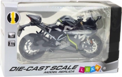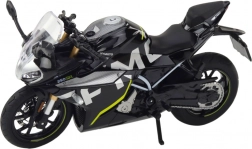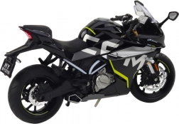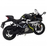 Športový model motorky v elegantnej čiernej farbe verne napodobňuje skutočný pretekársky stroj. Vďaka kovovým dielom a precízne spracovaným detailom je ideálny ako dekorácia na poličku aj ako odolná hračka na každodenné hranie. Integrované svetlo a zvuk ešte umocňujú realistický zážitok.