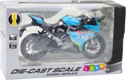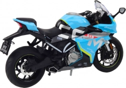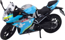 Tento modrý športový motocykel v mierke 1:12 vyniká precíznym spracovaním a pevnou kovovou konštrukciou. Realistické proporcie, verné detaily a kvalitná potlač z neho robia skvelý kúsok do vitríny aj atraktívnu hračku na hranie. Integrované svetelné a zvukové efekty podčiarkujú dojem skutočnej jazdy.