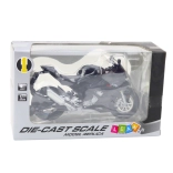 Model je vybavený svetelnými a zvukovými efektami, ktoré sa aktivujú pomocou 3x AG13 batérií (súčasťou balenia). Tieto doplnkové funkcie zvyšujú realistickosť hry, vďaka čomu motocykel pôsobí a znie ako skutočné vozidlo. Dynamický, športový dizajn v čiernej farbe inšpirovaný klasickými závodnými motocykle dodáva modelu autentický charakter.