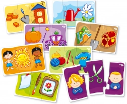 - 8 tematických obrázkov s tromi dielikmi na jednoduché prvé skladanie