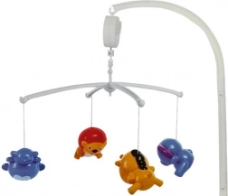 Farebné figúrky sa pri melódii otáčajú a vďaka guľôčkam vo vnútri príjemne hrkajú – podporujú zrak a sluch bábätka.
