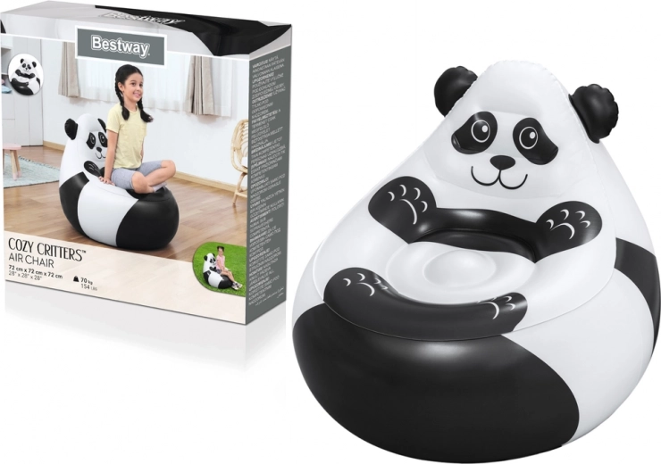 Nafukovacie kreslo Panda sa pýši inovatívnym dizajnom, ktorý upúta pozornosť každého dieťaťa. Kreslo poskytuje maximálne pohodlie, či už ležíte, natiahnete sa, alebo sedíte. Je vyplnené trblietkami, čo z neho robí atraktívny doplnok do každej detskej izby. Kreslo je vhodné ako pre vnútorné, tak aj vonkajšie použitie.