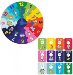 Farebné vzdelávacie puzzle v tvare hodín pre deti od 3 rokov, inšpirované seriálom COCOMELON. Pomáha rozvíjať jemnú motoriku, rozpoznávanie tvarov a farieb a zoznamuje deti so základmi určovania času zábavnou formou.