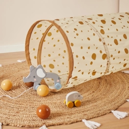Karamelové tóny a bodkovaný vzor dodávajú tunelu útulný a moderný vzhľad.