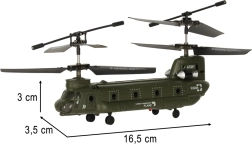 Dvojrotorová silueta a armádne sfarbenie pripomínajú transportný vrtuľník. Skvelá voľba pre fanúšikov vojenskej techniky aj začínajúcich pilotov.
