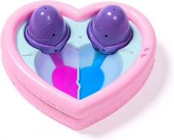 Vložte vajíčka do srdiečkového bazénika, odstráňte krídelká a pomaly prilievajte vodu. Keď obe strany srdca zmenia farbu, postavičky sa vyliahnu. Pridaním ďalšej vody sa odtiene spoja do fialovej pre ešte väčší wow efekt.