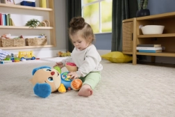 Tento mäkučký maznáčik je ideálny pre bábätká od 6 mesiacov. Deti objavujú prvé slovíčka, farby, tvary, písmenká aj počítanie a zároveň si precvičujú jemnú motoriku. Psík má na brušku svetelné srdiečko a pestrofarebné tlačidlá, ktoré aktivujú hudbu, zvuky a roztomilé frázy.